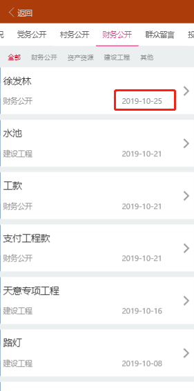 C端 - 党务公开、村务公开、财务公开各项展示的时间应该是发布时间