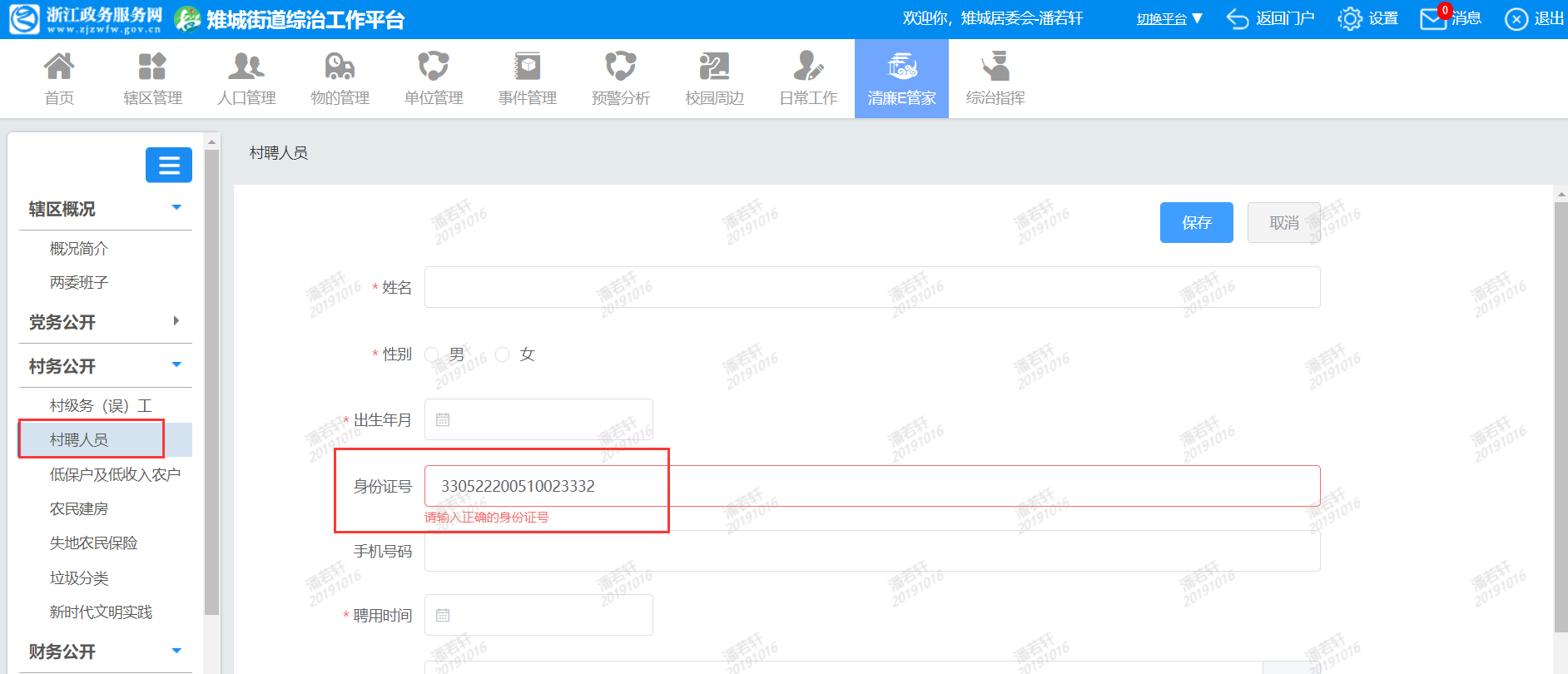 输入正确的身份证号,提示请输入正确的身份证号或者身份证有误